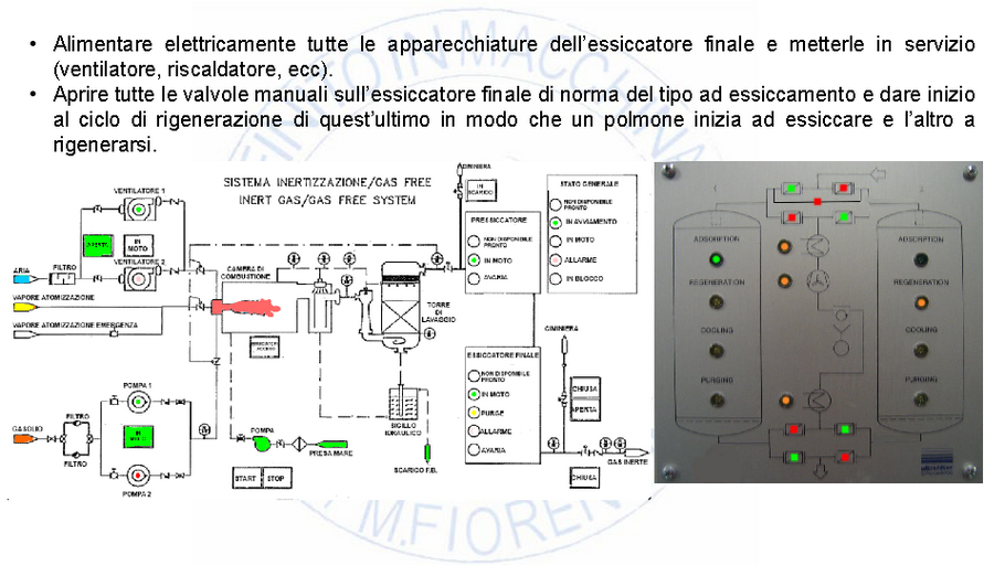 Il gas inerte prima di essere immesso nel circuito di distribuzione è costretto sotto pressione ad attraversare questa chiusura idraulica sistemata sul ponte che ha il compito di impedire, cosi come faceva quella nella torre di lavaggio, che gas di idrocarburi, sviluppati dal carico, possano defluire verso il generatore di gas inerte.